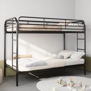 Metal Bunk Bed Twin Over Twin, Heavy Duty Bunk Beds with 2 Ladders and Full-Length Guardrai, No Box Spring Needed, Easy Assemble, Black