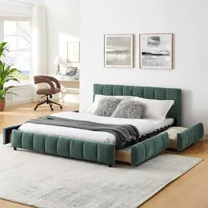 King Size Upholstered Bed ,comfortable upholstered bed frame, Chenille fabric, with headboard and solid bed frame. With drawer for storage-green(88.5''*85.5''*31'')