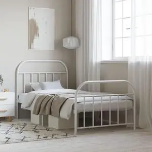 vidaXL 12 Inch White Twin Bed Frame with Headboard & Footboard, Sturdy Metal Platform Bed Frame & Slats, Extra Under Bed Storage, No Box Spring Needed, without Mattress