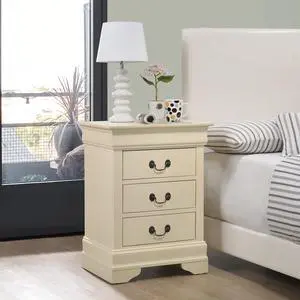 Pearl White Traditional 1pc Nightstand Only Solid wood 2-Drawers Round Knobs Bedside Table Genuine Marble Top on Night Stand Bedroom Furniture