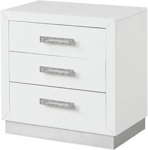 Sonia White Glossy Mirrored Nightstand - 3-drawer | Side Table | Modern | Lucite Acrylic Legs | Inspired Home