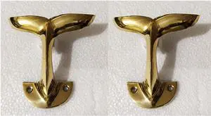 Brass Whale Tail Wall Mount Hooks (Set of 2) Unique Sculpture Decorative Coat Hook for Home, Office & Restaurant | 8 cm Height