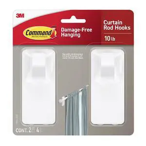 Command Curtain Rod Hooks [Removable]: 1-3/4 in. x 4 in. (White) *2-pack