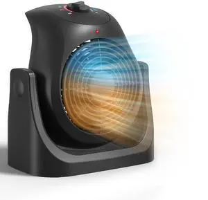 2 in 1 Fan and Heater Fan Combo, Portable Cooling Desk Fan, 45° Tilt Air Circulator Fan, 2 Wind Speeds, Tip-Over and Overheat Protection, Space Heater for Indoor Use Home Office, Black