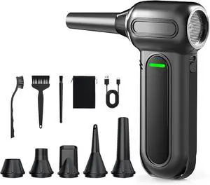 Hilitand Compressed Air Duster, 50000RPM 3 Speeds Handheld Vacuum Cleaner Electric Dust Blower for Car Home Cleaning, with 6 Detachable Nozzles