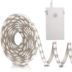 Battery Operated Motion Sensor Cabinet Strip Lights, 9.8Ft 90 LED Counter Closet Strip Light, Motion & Night Sensor Safe Tape Light for Stairs Wardrobe Kitchen (Cool White)- Brand: Bell & Howell