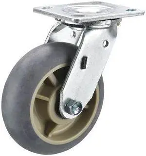 ZORO SELECT P21S-RCP060KP-14-H7 Swivel Plate Caster,Rubber,6 in,600 lb,Prcsn Bll