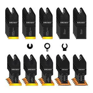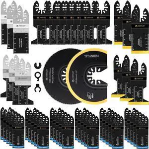 KEHIPI 50PCS Multi Tool Blade Kits, Professional Titanium Oscillating Tool Blades for Metal, Wood, Plastic, Curved Edge Oscillating Saw Blades Compatible with Dewalt Milwaukee Ryobi Rockwell Fein