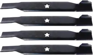 (4) USA Mower Blades Mulching Blade Fits AYP® 127843 134149 138498 138971 Length 21 in. Width 2 1/2 in. Thickness .204 in. Center Hole 5 Point Star 42 in. Deck