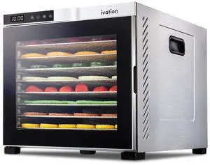 Ivation 10 Tray Commercial Food Dehydrator Machine | 1000w, Digital Adjustable Timer and Temperature Control | Dryer for Jerky, Herb, Meat, Beef, Fruit and To Dry Vegetables | Stainless Steel