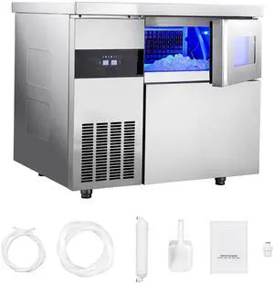 VEVOR Commercial Ice Maker Machine, 132 lbs/24H Stainless Steel Worktop Ice Machine with Sink, 30 lbs Storage & 70 Cubes/Cycle, Self-Cleaning Freestanding Ice-Making for Home Bar Restaurant Kitchen