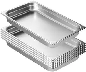 6 Pack Steam Table Pans 20.9 x 12.8 x 2.6 Inch Deep Steam Table Pan Full Size 8.5L Deep Food Container Stainless Steel Oven Tray Hotel Pans Anti-Jam Steam Table Food Pan