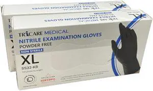 TRICARE MEDICAL Nitrile Exam Gloves, Low Derma, 3.5 Mil, Berry Black, 6 Boxes of 100 - XL