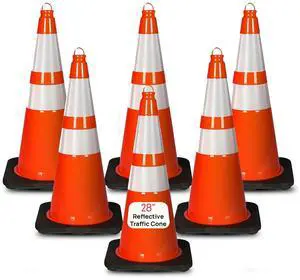 Traffic Cones, 4-Pack PVC with Heavy-Duty Base, High-Visibility Safety Cones with Stackable Design for Parking, Roadwork, Construction Zones, & Outdoor Weather-Resistant Use, 28" 6 Pack