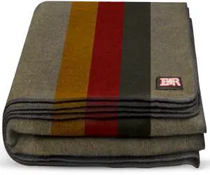 Ever Ready First Aid Military Wool Blanket - 95% Wool, Washable, Perfect for Outdoors, Travel, Car & Bushcraft Emergency Blanket, 96" x 96" 6.65 lbs. - Olive Drab Green with Stripes - Queen Size