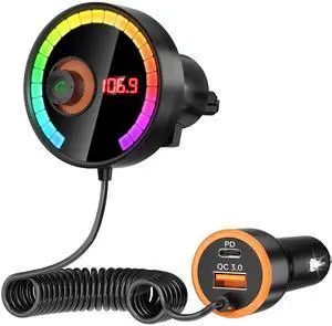 • Features: Bluetooth Car Adapter, PD+QC Fast Charging & 7-LED Breathing Backlit, FM Transmitter, Hands-Free Calls, Music Adapter & Player