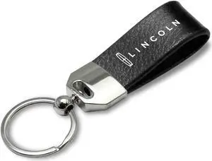 Lincoln Continental Black Real Leather Strap Chrome Round Hook Metal Key Chain