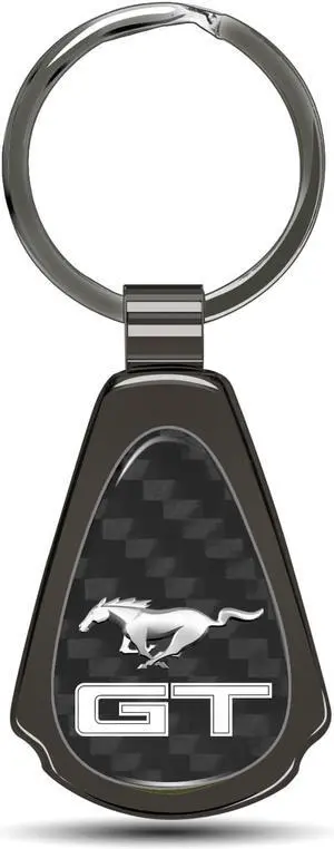 Ford Mustang GT Real Black Carbon Fiber Gunmetal Black Metal Teardrop Key Chain