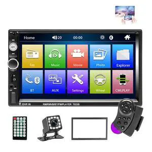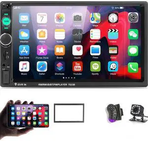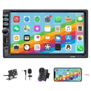 Double Din Car Stereo Radio with Bluetooth 7 Touch Screen FM Receiver MP5 Car Player Support Mirror Link for Phone + Backup Camera/Steering Wheel Control- Brand: AMprime