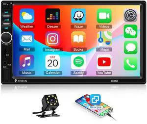 Double Din Car Stereo Bluetooth Wireless Carplay Android Auto-7 inch Touch Screen Car MP5 Player Bluetooth FM, 2 Din Radio Support MirrorLink, Type-C/SD/USB, Backup Camera, SWC, Video Play- Brand: Driauto