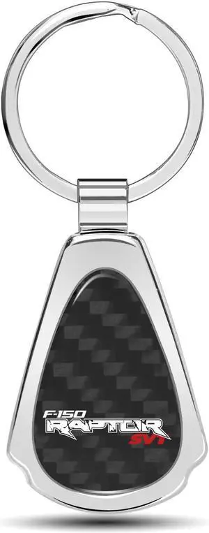 Ford F-150 Raptor SVT Real Black Carbon Fiber Chrome Metal Teardrop Key Chain