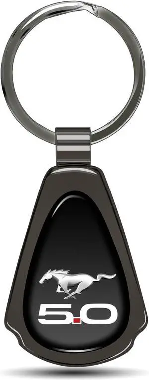 Ford Mustang GT 5.0 Black Dome Dark Gunmetal Metal Teardrop Key Chain