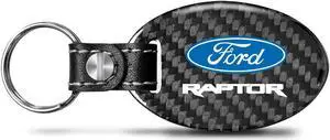 Ford F-150 Raptor Real Carbon Fiber Oval Shape Black Leather Strap Key Chain