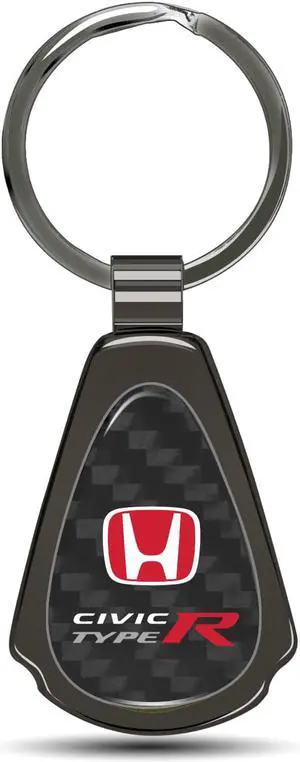 Honda Red Civic Type-R Real Carbon Fiber Gunmetal Black Metal Teardrop Key Chain