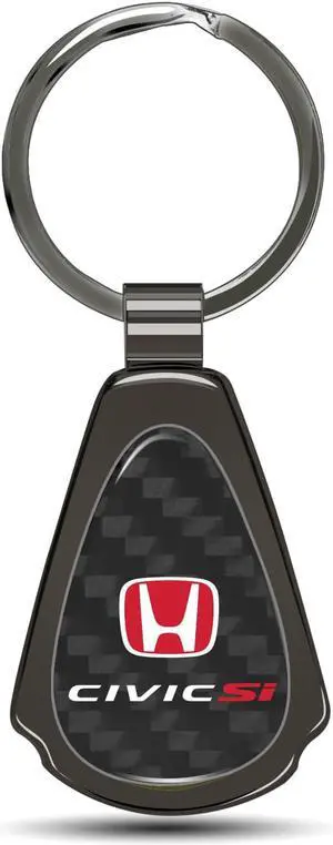 Honda Red Civic Si Real Carbon Fiber Gunmetal Black Metal Teardrop Key Chain