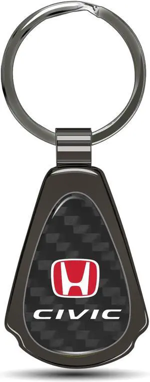 Honda Red Civic Real Black Carbon Fiber Gunmetal Black Metal Teardrop Key Chain