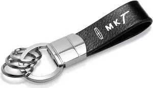 Lincoln MKT Black Real Leather Strap Chrome Round Hook Metal Key Chain