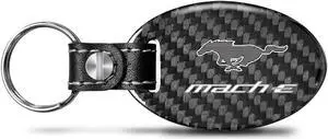 Ford Mustang Mach-E Real Carbon Fiber Large Oval Shape with Black Leather Strap Key Chain