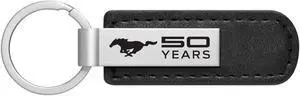 Ford Mustang 50 Years Silver Metal Black PU Leather Strap Key Chain