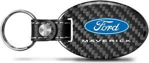 Ford Maverick Real Carbon Fiber Large Oval Shape with Black Leather Strap Key Chain