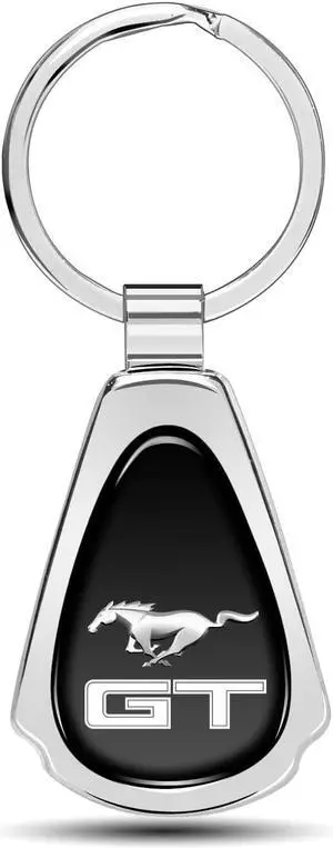 Ford Mustang GT Black Dome Chrome Metal Teardrop Key Chain