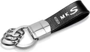 Lincoln MKS Black Real Leather Strap Chrome Round Hook Metal Key Chain