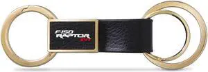 Ford F-150 Raptor SVT Black Leather insert Golden Metal Leather Strap Key Chain