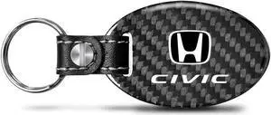 Honda Civic Real Carbon Fiber Large Oval Shape with Black Leather Strap Key Chain
