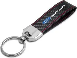 Ford Edge Real Black Carbon Fiber Loop Strap Key Chain with Red Stitching