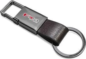 Ford F150 FX4 Off Road Brown Leather Strap Gunmetal Pull-out Metal Key Chain