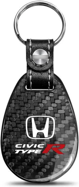 Honda Civic Type R Real Black Carbon Fiber with Leather Strap Large Tear Drop Key Chain