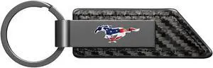 Mustang in USA Flag Gunmetal Black Gray Metal Carbon Fiber Texture Leather Key Chain