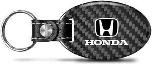 Honda Logo Real Carbon Fiber Large Oval Shape with Black Leather Strap Key Chain