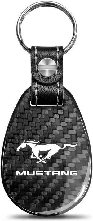 Ford Mustang Real Black Carbon Fiber with Leather Strap Large Tear Drop Key Chain