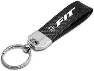 Honda Fit Real Carbon Fiber Leather Strap Key Chain with Black stitching