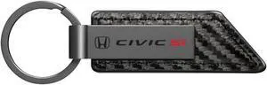 Honda Civic Si Gunmetal Black Gray Metal Plate Carbon Fiber Texture Leather Key Chain