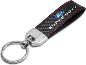 Ford Super-Duty Real Black Carbon Fiber Loop Strap Key Chain with Red Stitching