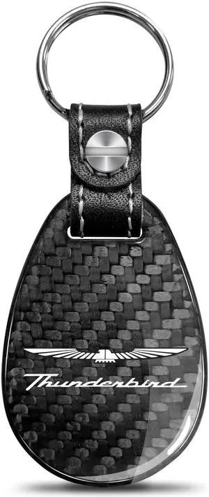 Ford Thunderbird Real Black Carbon Fiber with Leather Strap Large Tear Drop Key Chain