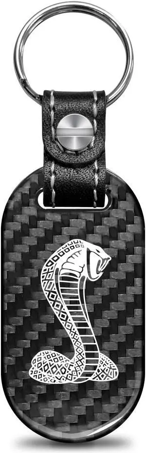 Ford Mustang Cobra in Black Real Carbon Fiber Strap Chrome Hook Key Chain