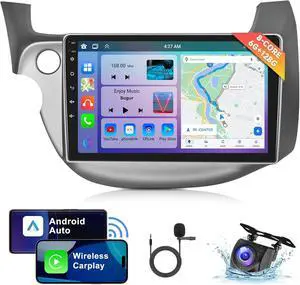 [8 CORE 6G+128G] Car Stereo for Honda Fit 2008-2013 with Wireless Carplay/Android Auto, 10.1 Inch Android 15 IPS Touch Screen Car Radio, Bluetooth, GPS, 5GWiFi, SWC, DSP + Backup Camera